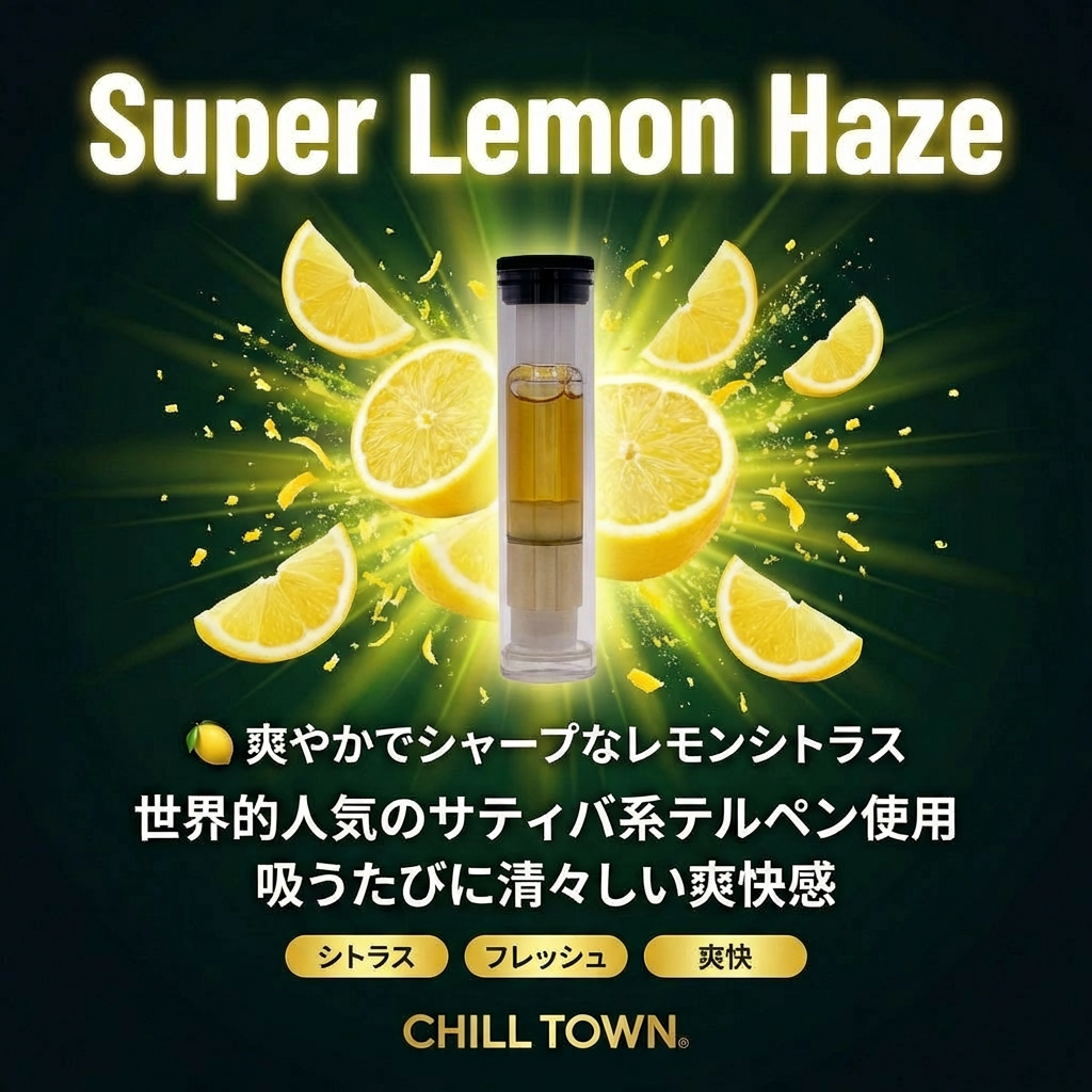 世界的に人気の高いサティバ優勢ストレイン由来のテルペンを使用。爽やかでシャープなレモンシトラスの香りが広がり、吸引するたびに清々しい気分に。CRDP×CRDHの力強い体感と相まって、爽快感と深みを同時に楽しめます。